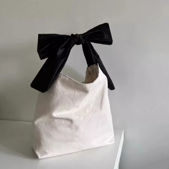 ハンドバッグ レディース バッグ 鞄 かばん キャンバスバッグ ワンハンドルバッグ リボンハンドル バイカラー コントラストカラー キャンバスバッグ シンプル 無地 カジュアル お出かけ おしゃれ