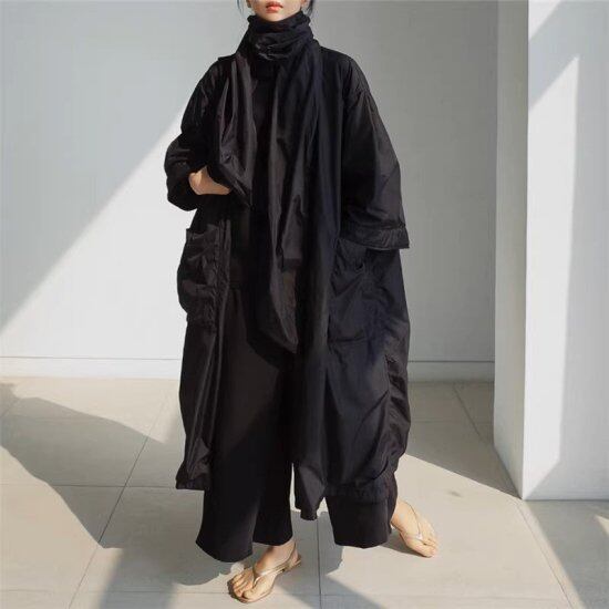 ロングコート レディース モッズコート ウィンドブレーカー スタンドカラー 長袖 ワイドスリーブ ゆったり オーバーサイズ ジャケット コート モード カジュアル オフィス おでかけ おしゃれ