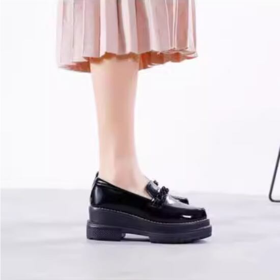 ローファー レディース 厚底 チェーン フェイクレザー エコレザー 太ヒール ハイヒール 6cmヒール プラットフォーム ブリティッシュ 安定感 光沢 美脚 脚長 滑りにくい オフィス おしゃれ
