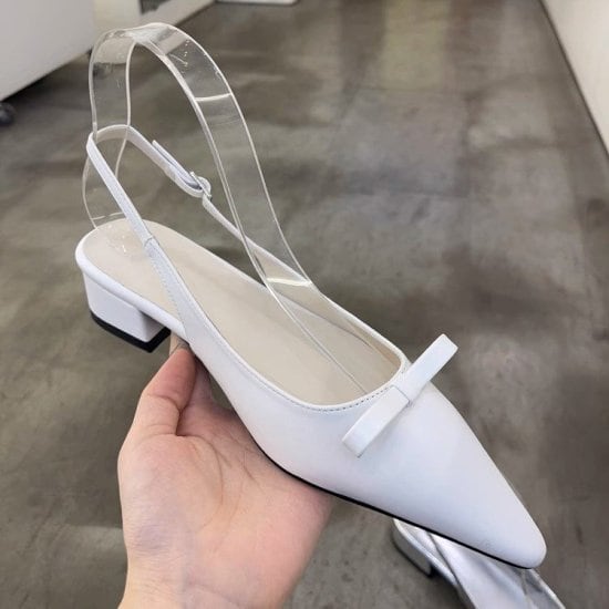 バックストラップパンプス レディース ポインテッドトゥ リボン フェイクレザー エコレザー ローヒール 3cmヒール レトロ クラシカル きれいめ 上品 エレガント オフィス パーティー おしゃれ