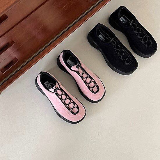スニーカー レディース 厚底 レースアップ 編み上げ ボリューム 5.5cmヒール スエード調 レトロ かわいい ガーリー カジュアル スポーティー 2color 個性的 ユニセックス おしゃれ