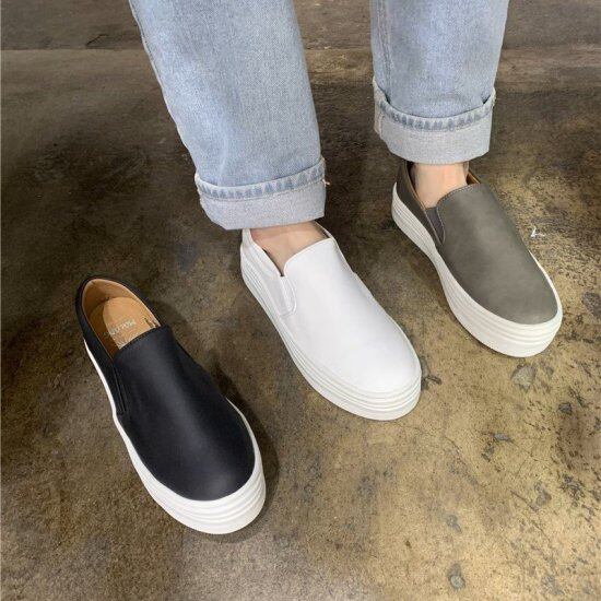スリッポン レディース スニーカー ラウンドトゥ 厚底 ローヒール 4cmヒール プラットフォーム シンプル フェイクレザー エコレザー レトロ ユニセックス スタイリッシュ カジュアル おしゃれ