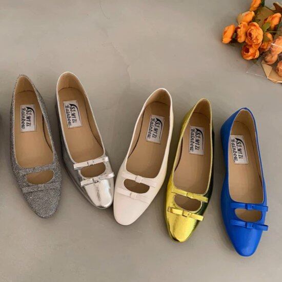 パンプス レディース バレエシューズ リボン フラットシューズ フェイクレザー エコレザー ローヒー 1cmヒール ダブルリボン 美脚 レトロ クラシカル 5color きれいめ ガーリー おしゃれ