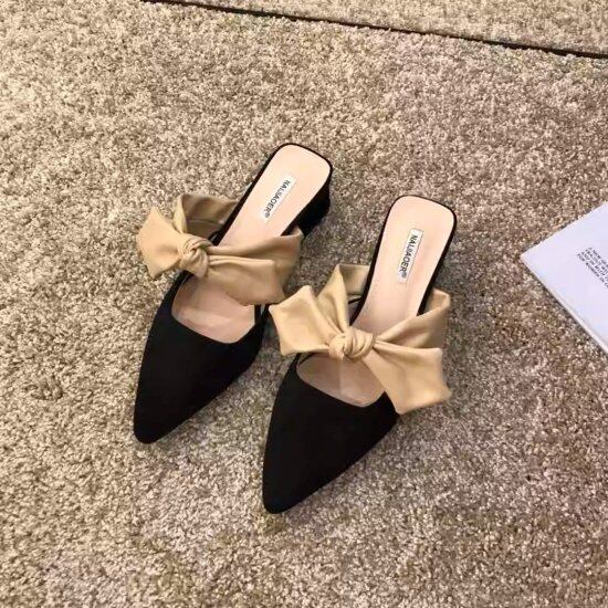 リボンミュール レディース バイカラー ポインテッドトゥ スエード ローヒール ミディアム 3.5cmヒール ツートーン レトロ クラシカル 2color かわいい ガーリー パーティー おしゃれ
