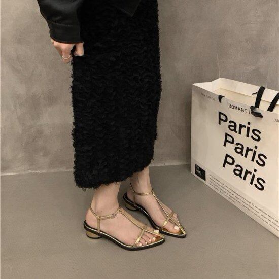 ストラップサンダル レディース フラットシューズ オープントゥ アンクルストラップ ローヒール ぺたんこ 2.5cmヒール レトロ クラシカル きれいめ エレガント カジュアル ビーチ おしゃれ