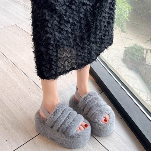 ファーサンダル レディース バックストラップ 厚底 オープントゥ フェイクファー エコファー ハイヒール 6cmヒール ふわふわ もこもこ かわいい カジュアル 5color スリッパ おしゃれ