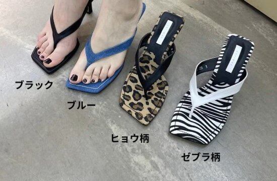 トングサンダル レディース スクエアトゥ ヒョウ柄 ゼブラ柄 アニマル柄 フェイクレザー エコレザー ハイヒール 8cmヒール オープントゥ レトロ 個性的 4color カジュアル おしゃれ