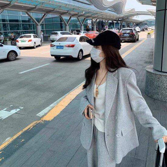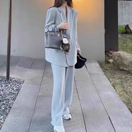 セットアップ レディース パンツスーツ ジャケット Vネック テーラードジャケット ワイドパンツ ロング スウェット リラックス レトロ カジュアル 上下セット 2点セット 旅行 おでかけ おしゃれ