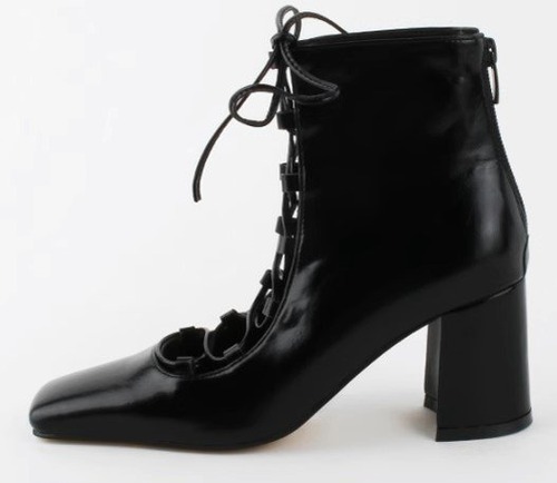 ショートブーツ レディース レースアップ ブーティー スクエアトゥ ハイヒール 7.5cmヒール 太ヒール フェイクレザー バックファスナー 4color 編み上げ きれいめ カジュアル おしゃれ