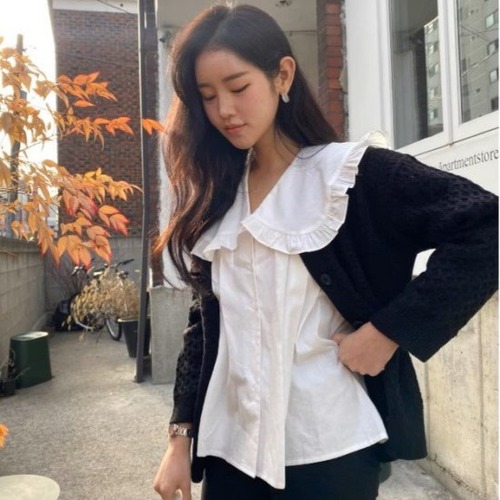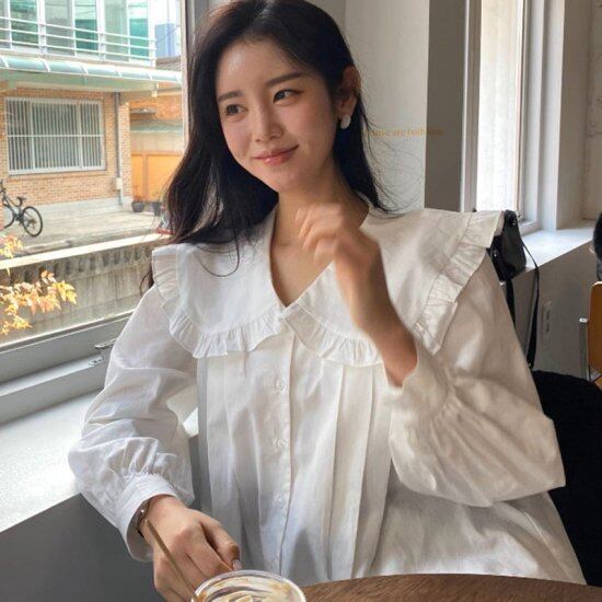 フリルブラウス レディース 長袖ブラウス シャツ ボリューム袖 パフスリーブ ビッグカラー フリル タック入り オーバーサイズ レトロ クラシカル かわいい ガーリー カジュアル 白シャツ おしゃれ