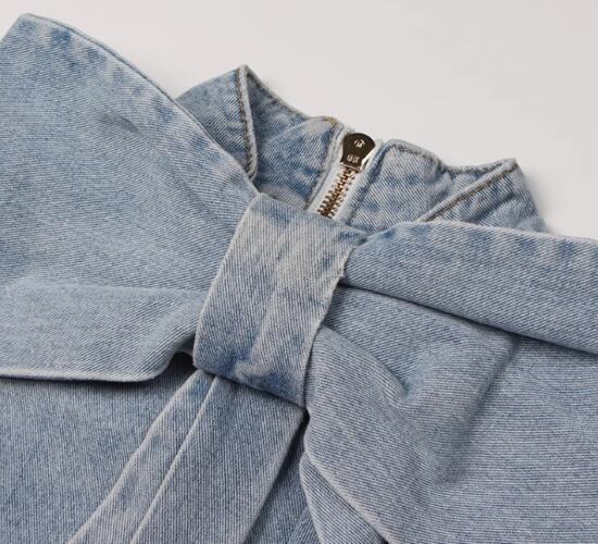 デニムシャツ レディース トップス 長袖シャツ ビッグリボン 可愛い キュート リボンタイ バックジッパー カジュアル 個性的 エレガント おしゃれ お出かけ きれいめ ファッション 女性 デニム