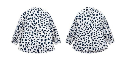ドット柄ブラウス レディース パフスリーブ 水玉 変形 七分袖 ボリューム袖 スタンドカラー 襟なし ドット柄シャツ 水玉ブラウス レトロ きれいめ 個性的 カジュアル シャツ ブラウス おしゃれ