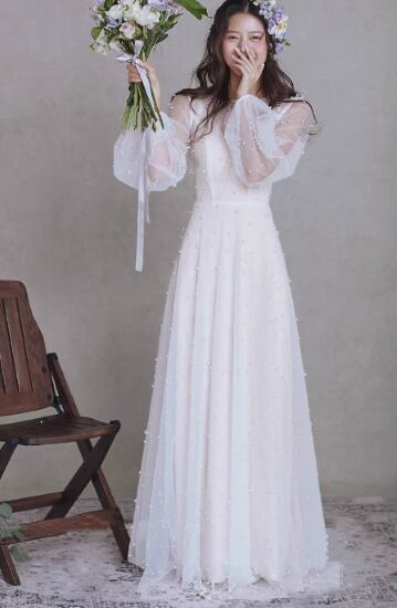 ウエディングドレス レディース 結婚式ドレス ワンピースドレス ロングドレス 演奏会ドレス パーティードレス 長袖 シースルー 花嫁 ラウンドネック 海外ウエディング 披露宴 きれいめ エレガント