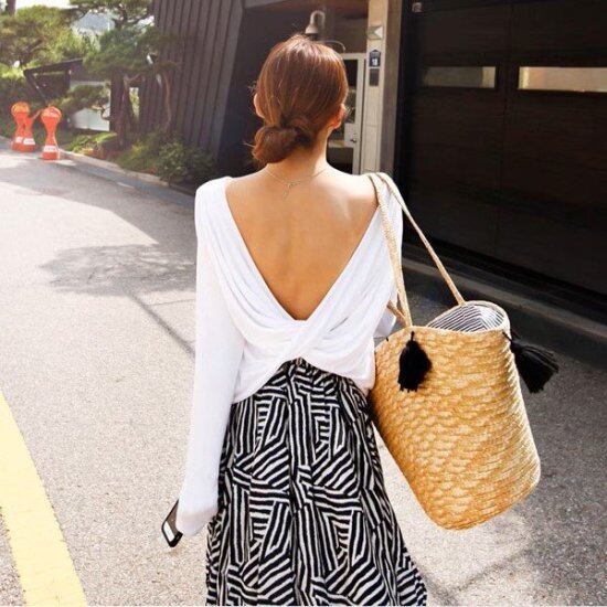 長袖Tシャツ レディース バックオープン カットソー プルオーバー 背中あき 長袖 ラウンドネック ボートネック ツイスト 薄手 2color カジュアル エレガント ヨガ リゾート おしゃれ