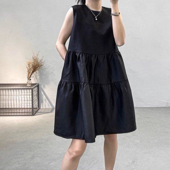 ノースリーブワンピース レディース ミニワンピース ティアード シャツ ブラウス プルオーバー チュニック ラウンドネック 袖なし Aライン ティアードワンピース ガーリー エレガント おしゃれ