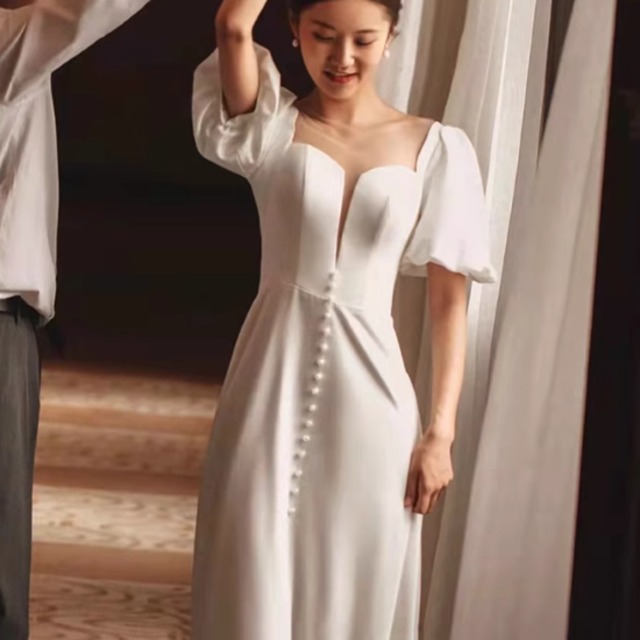 ウエディングドレス レディース パーティードレス 結婚式ドレス ワンピースドレス ロングドレス 花嫁 パフスリーブ ロングワンピース ブライダル きれいめ エレガント プリンセス スクエアネック