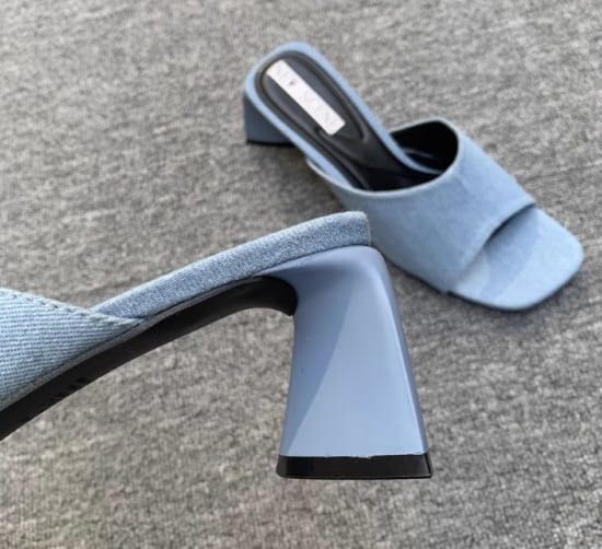 スライドサンダル レディース 靴 シューズ サンダル オープントゥ シンプル 無地 太ヒール チャンキーヒール デニム カジュアル お出かけ おしゃれ 美脚 脚長 女性 ファッション 春夏 きれいめ