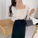 長袖ブラウス レディース パフスリーブ スクエアネック シャツ ブラウス プルオーバー ボタン 長袖 レトロ クラシカル 2color きれいめ 上品 エレガント カジュアル オフィス おしゃれ