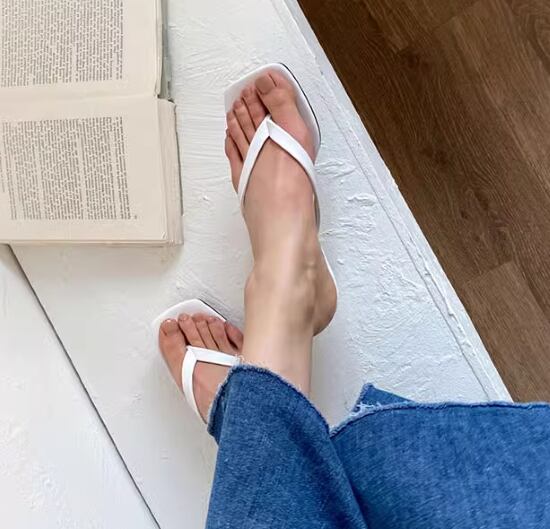 トングサンダル レディース 靴 シューズ サンダル スクエアトゥ ヒールサンダル シンプル 無地 美脚 脚長 カジュアル お出かけ おしゃれ ビーチサンダル 選べるヒール 女性 ファッション 夏