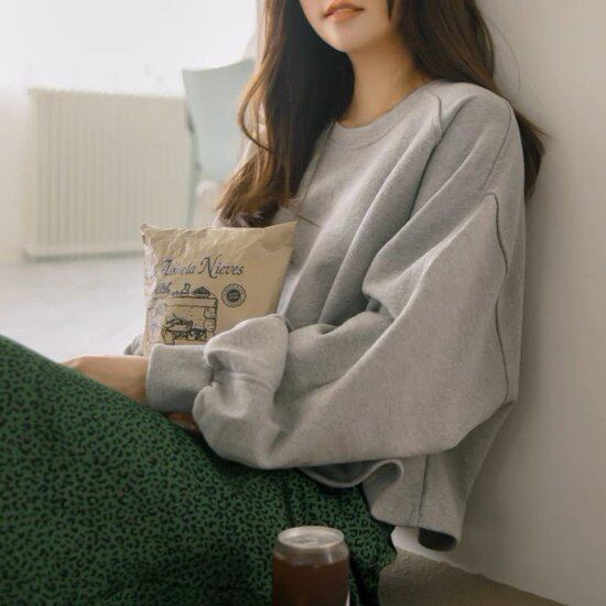 スウェットシャツ レディース トレーナー 長袖 ショート丈 ボリューム袖 ラウンドネック オーバーサイズ フレア ストレッチ レトロ スウェット プルオーバー フェミニン カジュアル おしゃれ