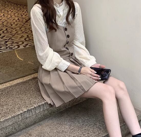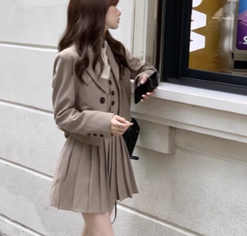 セットアップ レディース 2点セット 上下セット ワンピース プリーツスカート ジャケット 羽織 長袖 フロントボタン スーツ カジュアル お出かけ おしゃれ きれいめ ミニスカート ハイウエスト