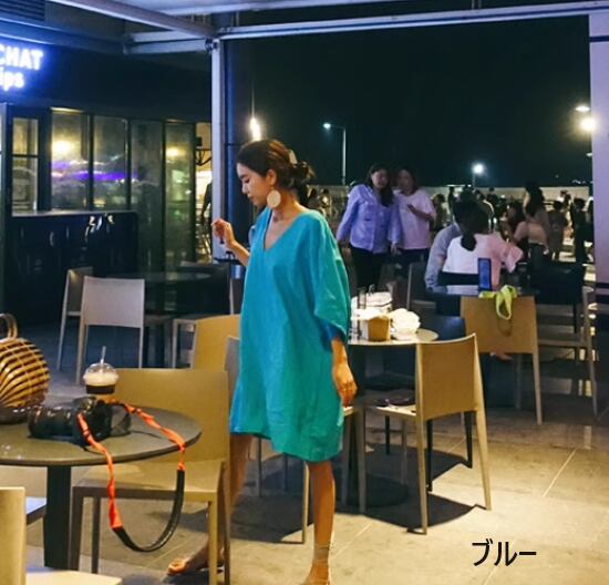 ミニワンピース レディース ワンピース 五分袖ワンピース Vネック シンプル 無地 ゆったり 体型カバー プルオーバー コットンリネン 綿麻 ナチュラル カジュアル お出かけ おしゃれ 春夏 女性