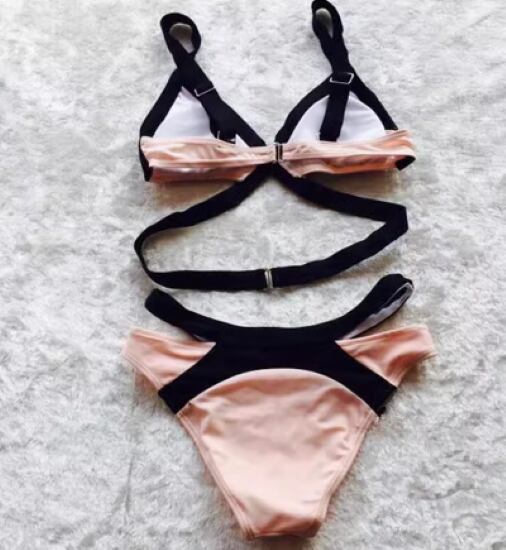 ビキニ レディース 水着 上下セット ツーピース スイムウェア ビーチウェア クロスデザイン バイカラー コントラストカラー 肌見せ セクシー カジュアル 海 ビーチ プール 夏 海水浴 リゾート
