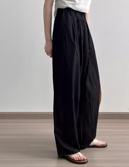 ロングパンツ レディース ボトムス パンツ 長ズボン ワイドパンツ ハイウエスト シンプル 無地 薄手 プリーツパンツ カジュアル お出かけ おしゃれ 春夏 ゆったり ルーズ ファッション ポケット