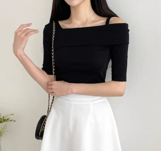 半袖カットソー レディース トップス スリムフィット アシンメトリー ワンショルダー 肩出し カジュアル お出かけ おしゃれ セクシー きれいめ 春夏 プルオーバー 女性 ファッション シンプル