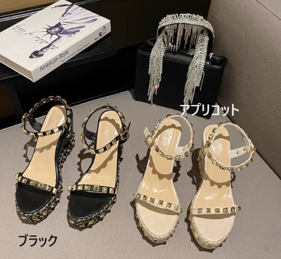 ウエッジソールサンダル レディース 靴 シューズ サンダル プラットフォーム 厚底 ハイヒール スタッズ 個性的 美脚 脚長 夏 カジュアル お出かけ おしゃれ リゾート バカンス アンクルストラップ