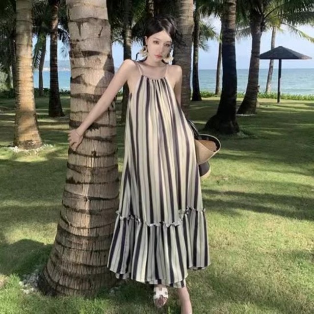 キャミソールワンピース ストライプ レディース リゾート リゾートワンピ ロングワンピ ワンピース お出かけ デート リゾートワンピース 袖なし ストライプ キャミソール ロング丈 マキシ丈