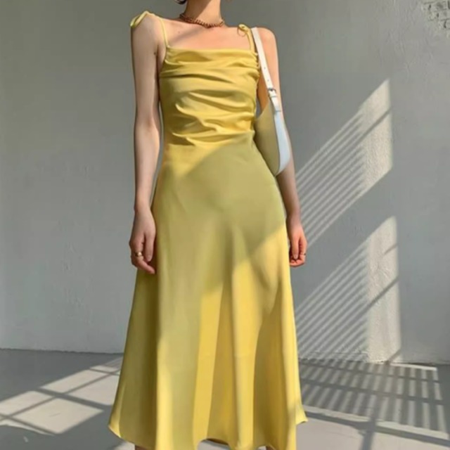 キャミソールワンピース レディース ワンピース ロングワンピース サテン ノースリーブ シンプル 無地 きれいめ エレガント カジュアル お出かけ おしゃれ お呼ばれ フォーマル パーティー 女性