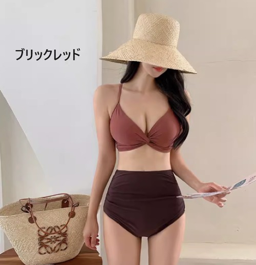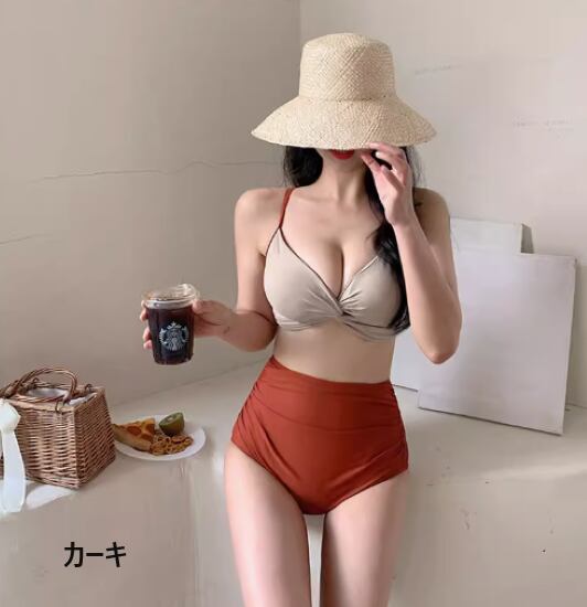 ビキニ レディース 水着 セパレート 上下セット ツーピース スイムウェア ビーチウェア ツイストデザイン ハイウエスト シンプル 無地 ベーシック 海 夏 バカンス 海水浴 プール 細ストラップ