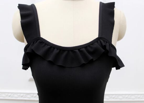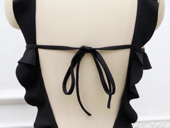 ワンピース水着 レディース 水着 スイムウェア ビーチウェア フリル 背中開き バックリボン 体型カバー カジュアル おしゃれ 黒 ブラック 海 ビーチ プール 海水浴 バカンス 夏 女性 可愛い