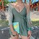 ワンピース水着 レディース 水着 スカート水着 ハイウエスト サイドリボン 裾フリル カシュクール 体型カバー カジュアル フェミニン おしゃれ スイムウェア ビーチウェア 夏 ビーチ 海 バカンス