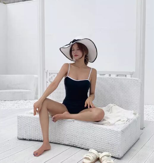ワンピース水着 レディース 水着 スイムウェア ビーチウェア 細ストラップ シンプル 無地 バイカラー コントラストカラー 体型カバー カジュアル ベーシック 海 夏 プール 海水浴 バカンス 女性