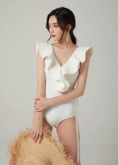 ワンピース水着 レディース 水着 スイムウェア ビーチウェア Vネック フリル ウエストリボン 背中開き カジュアル 体型カバー 無地 おしゃれ ビーチ プール 海水浴 バカンス ホワイト ブラック