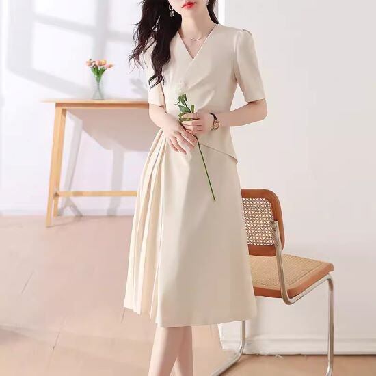 ワンピース ドレス シャツワンピース ホワイト 大きいサイズ Vネック 長袖 春 秋 ウエストマーク 細見え 着痩せ プリーツスカート お呼ばれ パーティー セレブカジュアル セクシー 可愛い