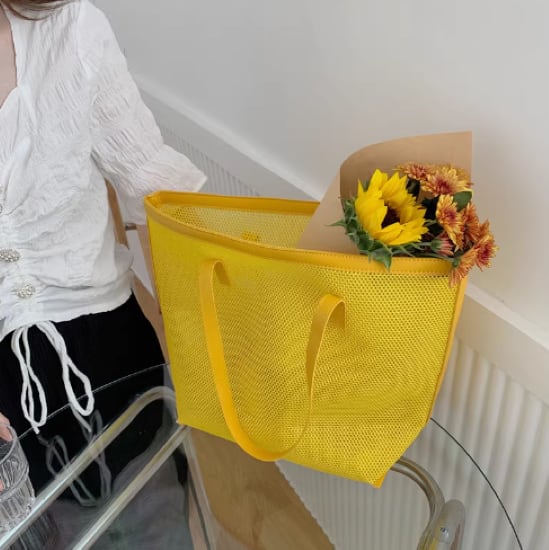 トートバッグ レディース バッグ 鞄 かばん メッシュバッグ ビーチバッグ 大容量 シンプル 無地 イエロー ブラック 黄色 黒 カジュアル お出かけ おしゃれ ファッション ショッピングバッグ