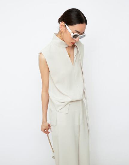 パンツスーツ レディース セットアップ 上下セット ツーピース パンツドレス ノースリーブ ボウタイ ベスト ワイドパンツ きれいめ エレガント スタイリッシュ パーティー お呼ばれ フォーマル 女性
