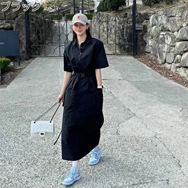 セットアップ レディース シャツ スカート ブラウス 半袖 カーゴ ロング ベルト ツーピース 2点セット 上下セット カジュアル シンプル ウエストマーク 2色展開 ロング丈 ワンピース 無地