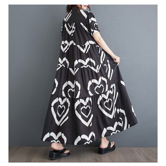 ワンピース 大きいサイズ ゆったり オーバーシルエット ティアード フレア Aライン フロントボタン エレガント 半袖 バイカラー ロングワンピース 大きいサイズ ゆったり オーバーシルエット