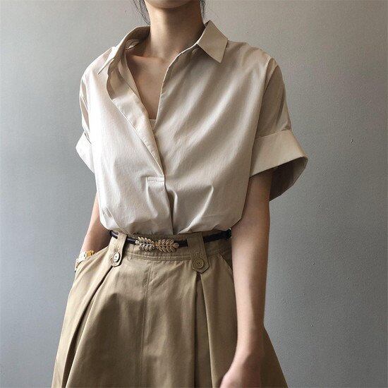 シャツ ブラウス レディース シンプル 無地 半袖 スキッパーシャツ コクーンシルエット オフィスカジュアル コットン 通勤 シャツ ブラウス レディース カジュアル エレガント 半袖シャツ