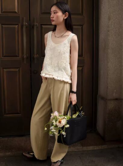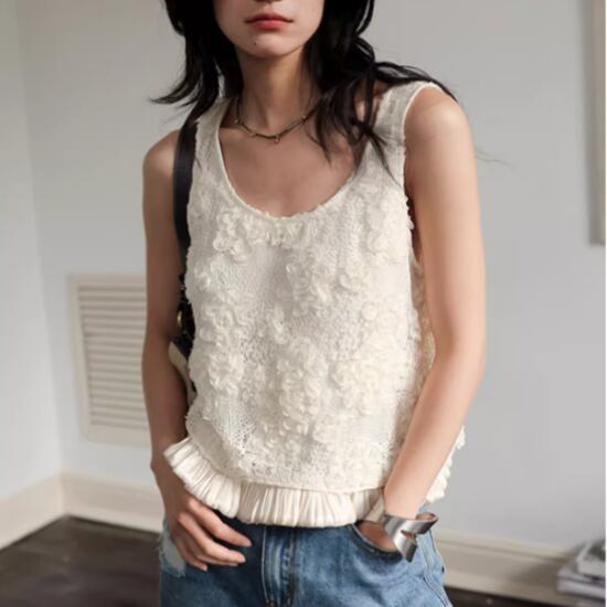 タンクトップ レディース トップス ノースリーブ プルオーバー フリル 花柄 刺繍 フラワー フローラル ラウンドネック インナー カジュアル お出かけ おしゃれ 春夏 ファッション 女性 個性的