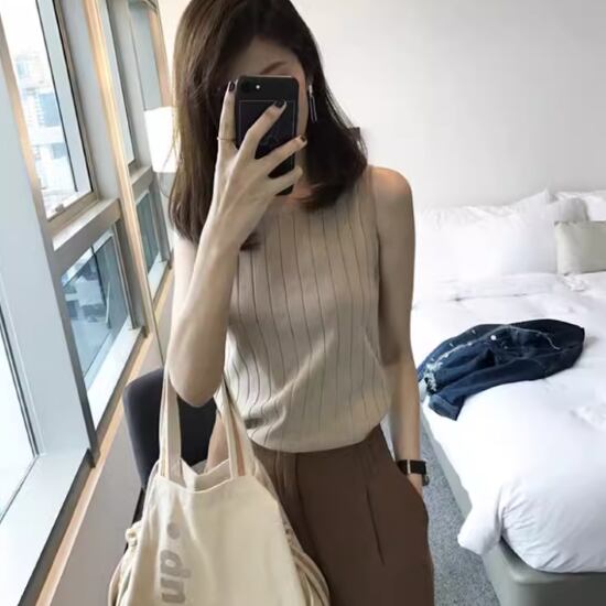ニットタンクトップ レディース トップス タンクトップ ノースリーブ ラウンドネック リブニット インナー シンプル 無地 定番 ベーシック スリム カジュアル お出かけ おしゃれ プルオーバー