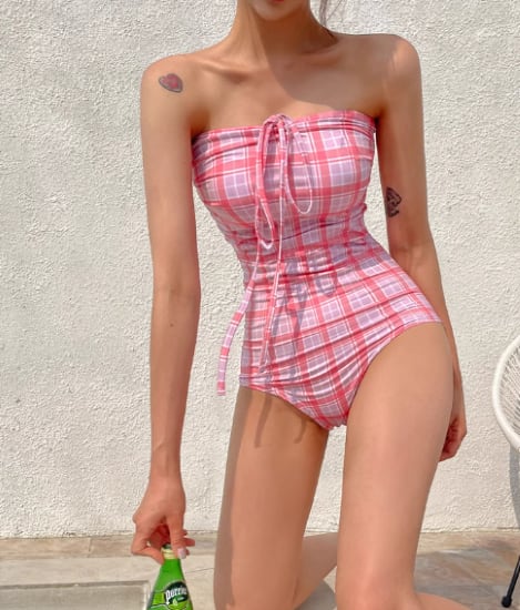 ワンピース水着 レディース 水着 スイムウェア ビーチウェア チェック柄 ホルターネック 格子柄 体型カバー カジュアル セクシー 可愛い おしゃれ 海 夏 ビーチ プール 海水浴 バカンス 女性