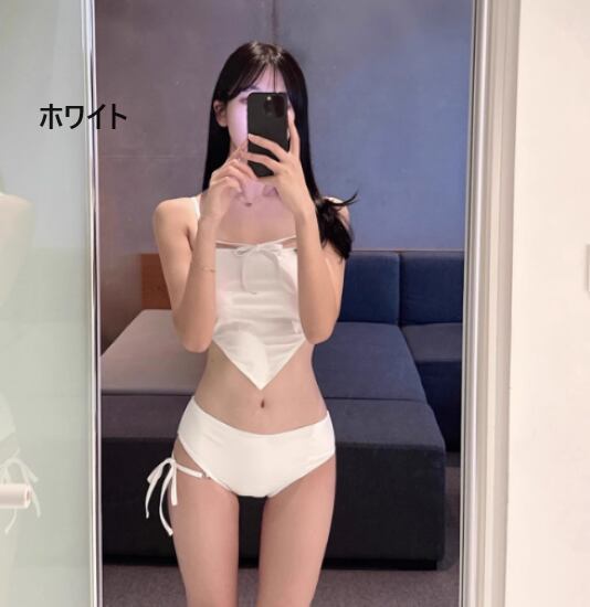 ビキニ レディース 水着 スイムウェア ビーチウェア セパレート 海 夏 海水浴 バカンス プール リボン 細ストラップ セクシー 可愛い ホワイト ブラック 白 黒 上下セット ツーピース 女性