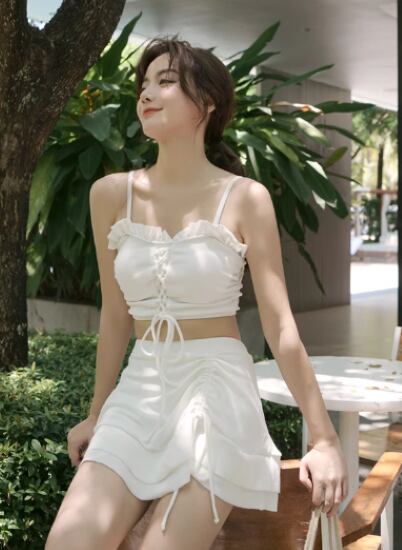 ビキニ レディース 水着 セパレート 上下セット ツーピース スカート水着 フリル キュート 可愛い フェミニン レースアップ 白 ホワイト ビーチ プール 海水浴 バカンス 夏 スイムウェア 女性