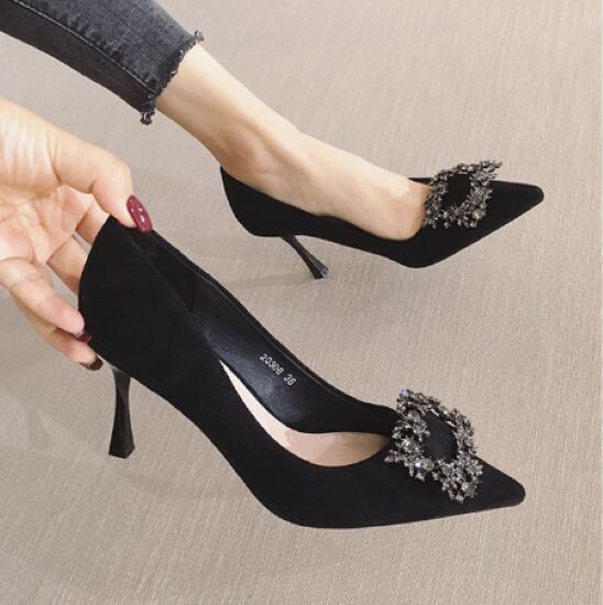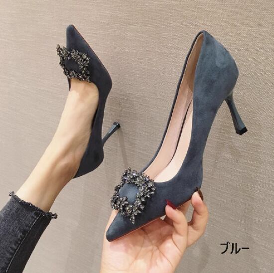 パンプス レディース 靴 シューズ ポインテッドトゥ ハイヒール スティレットヒール スエード ビジュー きらきら ラインストーン きれいめ エレガント パーティーシューズ フォーマル お呼ばれ