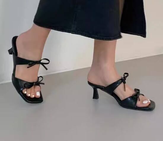 サンダル レディース 靴 シューズ オープントゥ リボン スティレットヒール 美脚 脚長 カジュアル お出かけ おしゃれ スクエアトゥ ダブルストラップ 夏 きれいめ エレガント 女性 サンダル